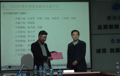 广安凭借雄厚的实力荣获华润总部大厦2015年12月份创优考评排名第三及2015年度优秀承包商,我司陈如平先生获得“2015年度先进个人”的荣誉。